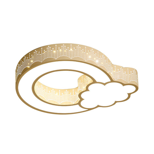 Kids Bedroom Ceiling Light With Etched Metal Acrylic Design And White Led Lamp / C Warm