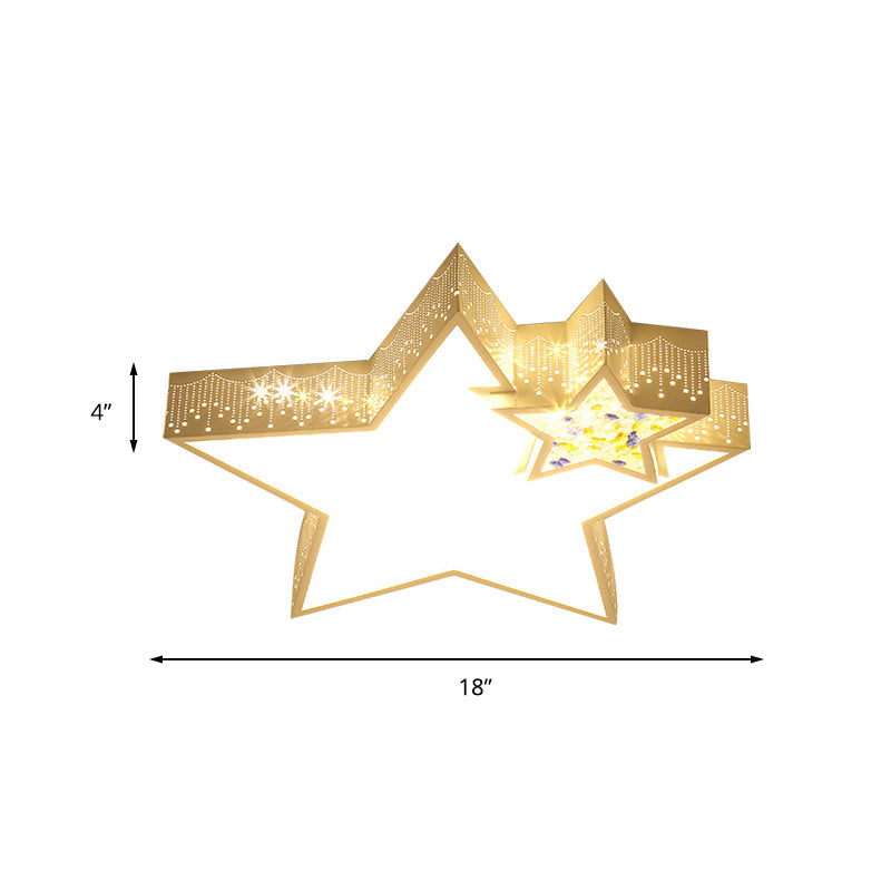 Kids Bedroom Ceiling Light With Etched Metal Acrylic Design And White Led Lamp / B