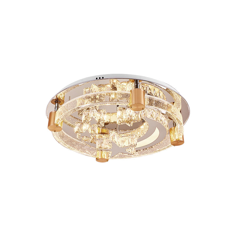 The size of this product is between 20 and 24 inches in diameter, with a fixture width of 23.5 inches. The fixture height is 6 inches. The light comes included with the product. The lightbulb base is an SMD. The voltage of this product is either 220v-240v or 110v-120v. The product is a semi-flush mount. The light type is LED.
