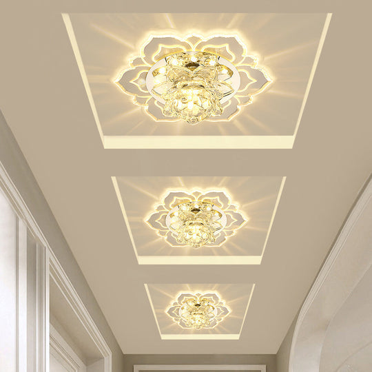 Modern Crystal Led Flush Mount Ceiling Light For Hallway - Clear Blossom Design / Multi Color
