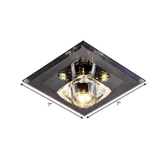 Contemporary Led Square Flushmount Light With Clear Crystals - Black Ideal For Corridor Ceiling