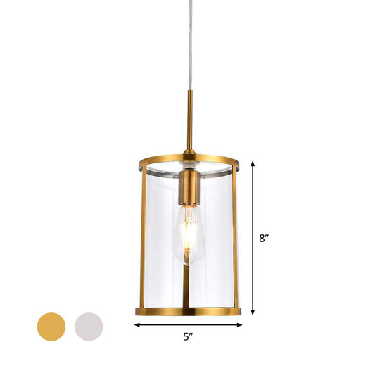 Modern Clear Glass Cylinder Pendant – 1-Bulb Gold/Nickel Hanging Lamp for Living Room