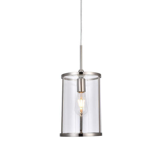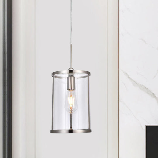 Modern Clear Glass Cylinder Pendant Light With Gold/Nickel 1-Bulb Hanging Kit For Living Room Nickel