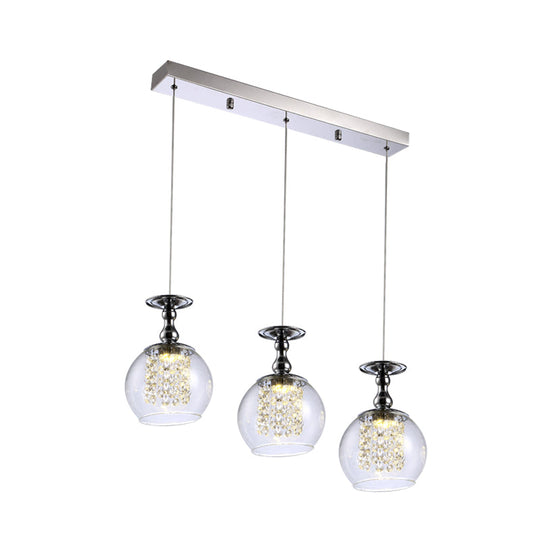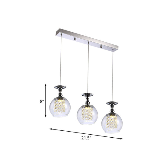 Contemporary Wine Glass Pendant Light With Crystal Droplets - 3 Lights Chrome Finish Clear