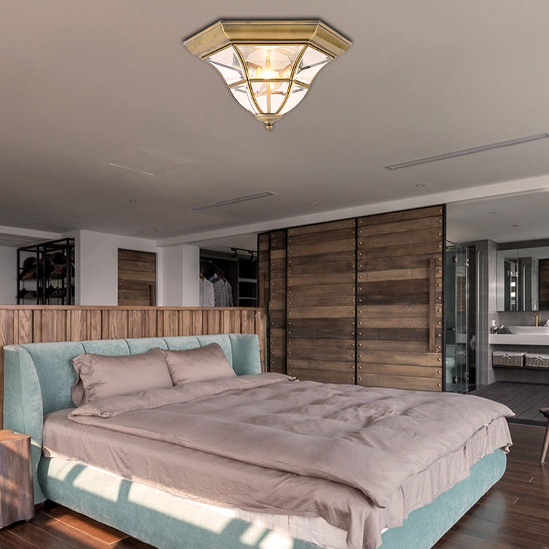 Colonial Bell Ceiling Light Fixture - Clear Curved Glass Flush Mount Chandelier With Brass Finish 3
