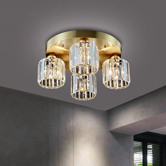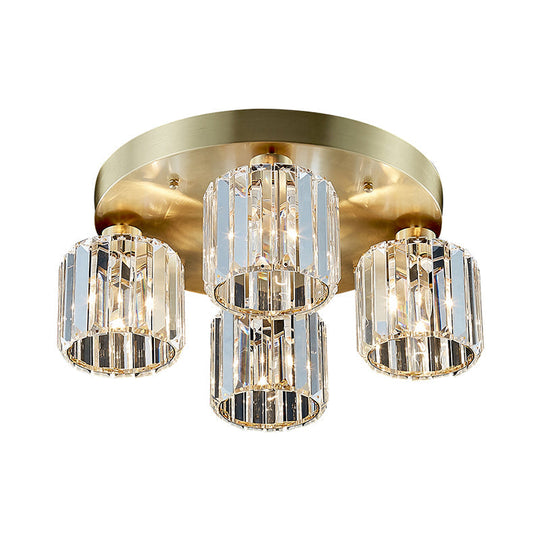 Modern Cylindrical Semi Flush Crystal Chandelier - Gold