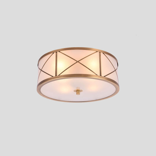 Classic Gold Glass Drum Flush Mount Lighting Fixture - Perfect For Corridors