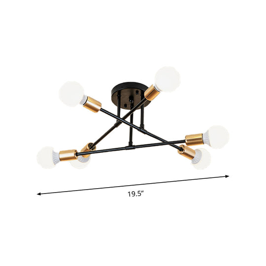Modern Nordic Metal Semi Flush Mount Ceiling Light Fixture - 6 Lights Black/White Bedroom Lighting