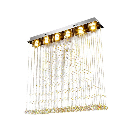 This product is a contemporary style crystal ball cascade flush mount ceiling light featuring 6 lights and a modern design. It comes in a brushed nickel finish and has a length of 39 inches, a width of 8 inches, and a height of 39 inches. This light is ideal for modern, contemporary or minimalistic home decors. It is constructed with crystal material, making it both functional and stylish. Additionally, it is available in either 220V-240V or 110V-120V voltage options and is equipped with a GU10 bulb base for LED bulbs. All in all, it is perfect for adding that designer look to any space and is sure to make a statement in any home.