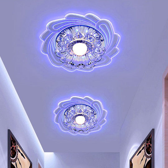 Minimalist Clear Led Crystal Flower Flush Mount Light For Corridor / Blue