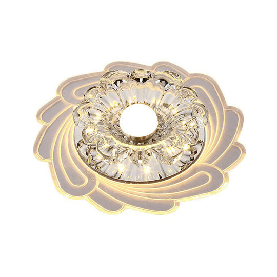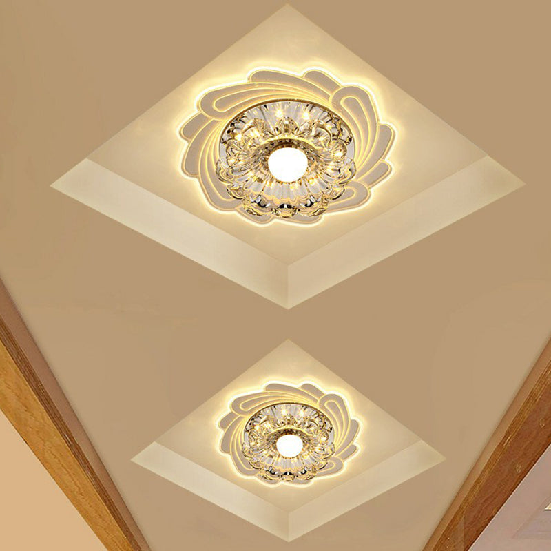 Minimalist Clear LED Crystal Flower Flush Mount Light for Corridor