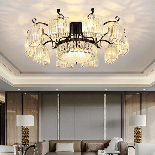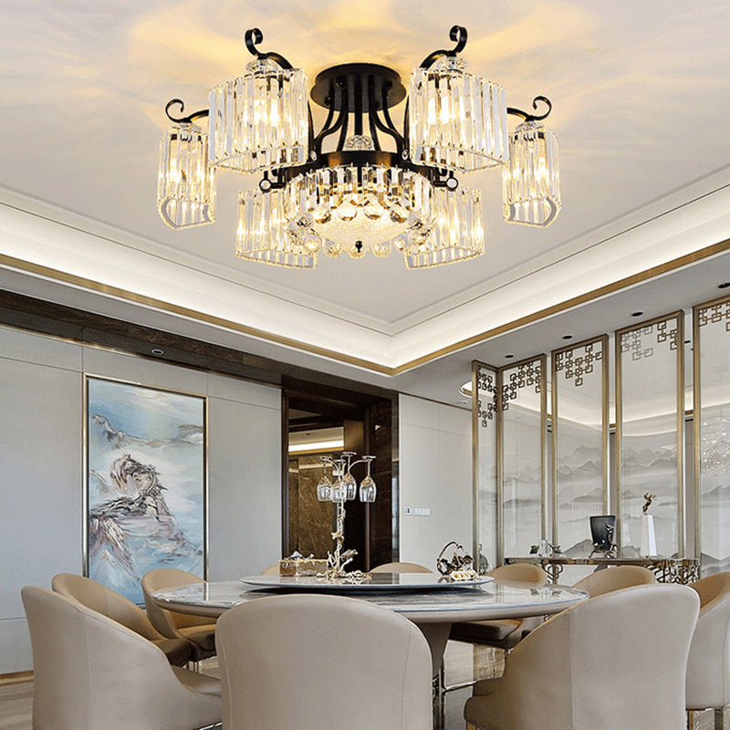 Vintage Black Crystal Prism Semi Flush Ceiling Mount Lamp For Living Room 14 /