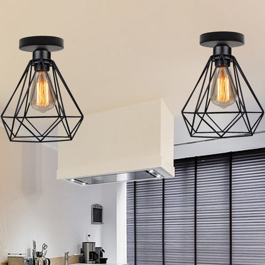 Retro Single Black Diamond Bathroom Ceiling Light - Semi-Flush Mount