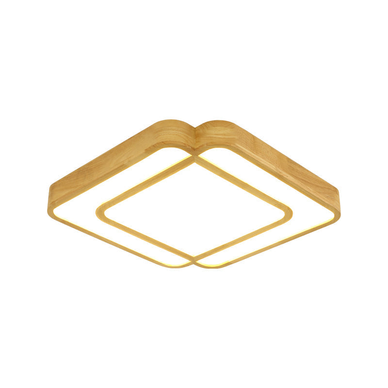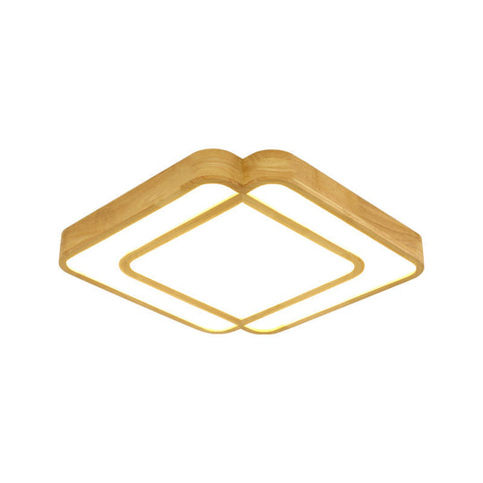 This Diamond Shape Bedroom LED Flush Mount Lamp Wooden Simple Flush Light Fixture in Beige is perfect for any modern bedroom. It not only provides effective illumination but also adds a touch of style and sophistication to the space. With this light fixture, you can easily customize the light output and directional lighting to fit your needs. This product is made from wood and is available in three sizes - small, medium, and large. The small size is 19" long, 19" wide, and 2" tall; the medium size is 22.5" long, 22.5" wide, and 2" tall; and the large size is 26.5" long, 26.5" wide, and 2" tall. Additionally, it features a bulb included and comes in a stylish wood color, adding the perfect touch of aesthetics for modern decor.