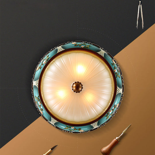 Vintage Frosted Glass Dome Flush-Mount Bedroom Ceiling Light 3 / Blue