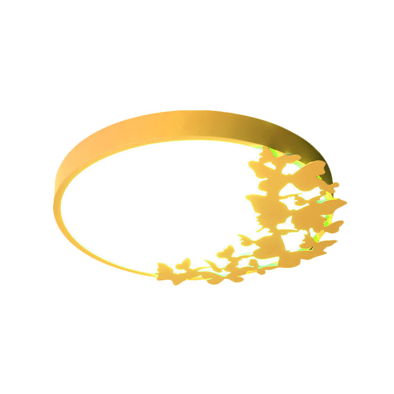 Contemporary Led Drum Ceiling Light Fixture In Pink/Blue/Yellow - Brighten Your Bedroom With Flush