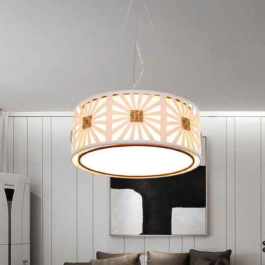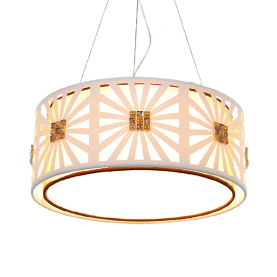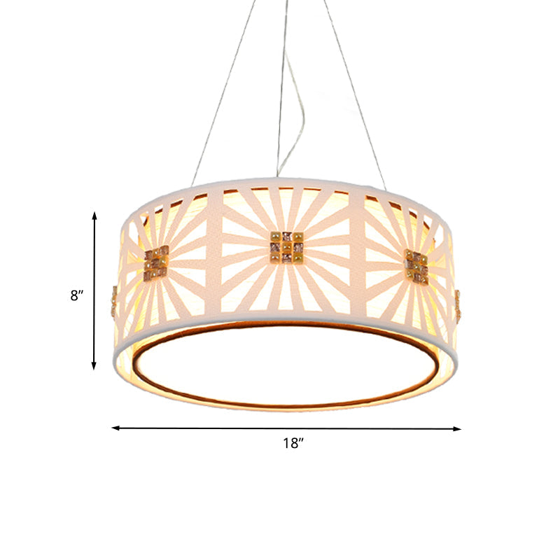 Contemporary Led Metal Hanging Drum Pendant Light With Fabric Shade White 18/21.5 Wide / 18