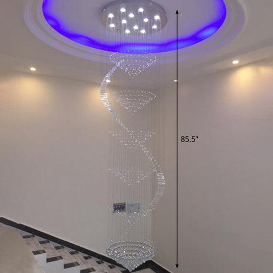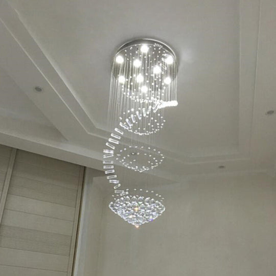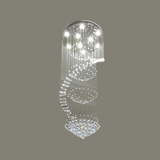 Sleek Spiral Ceiling Lamp with Crystal Flush-Mount in Stainless Steel - 9/12 Lights, Small/Medium/Large Options