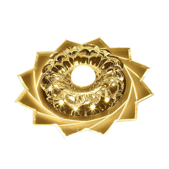 Contemporary LED Crystal Flush Ceiling Light with Floral Corridor Design - Clear
