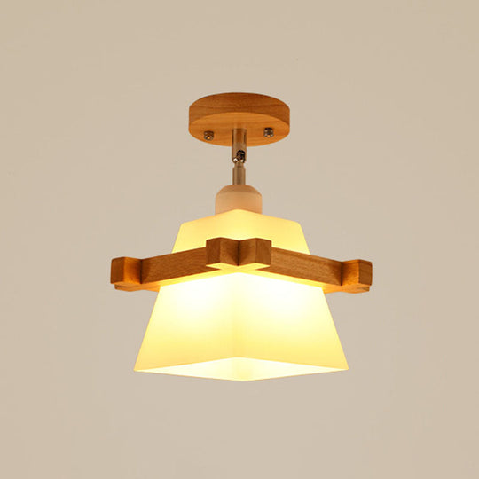 Sleek Asian Bamboo Geometric Semi Flush Mount Ceiling Light With Wood Finish / C