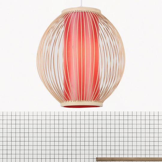 Bamboo Chinese-Style Hanging Lamp With Inner Red Cylinder Shade