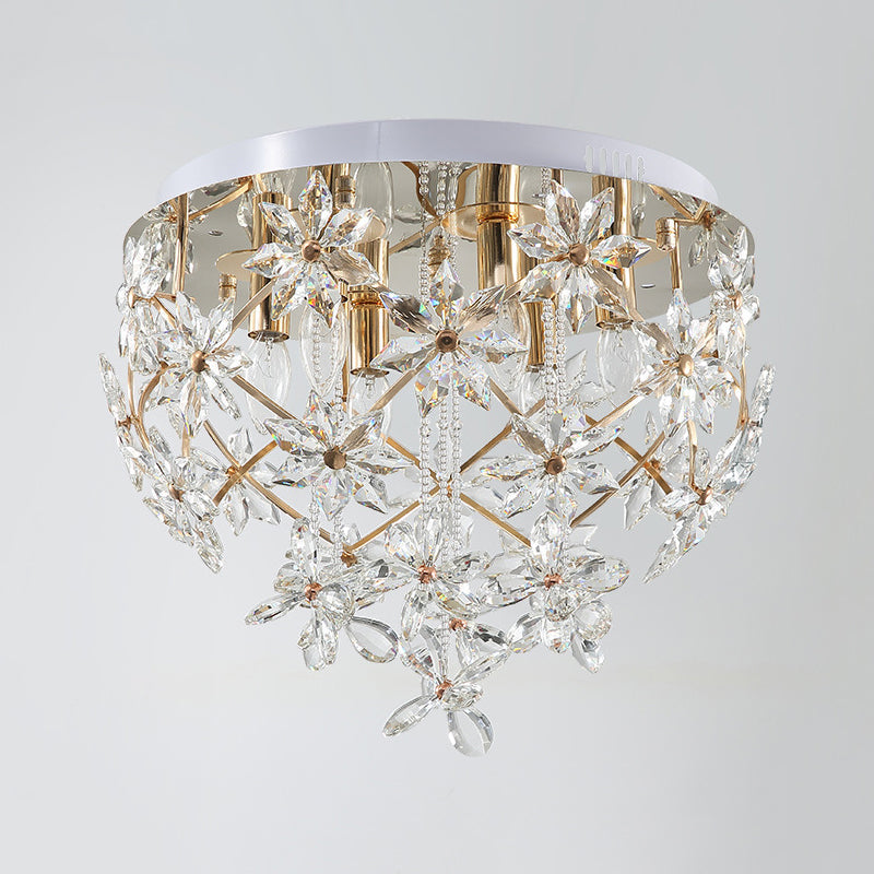Stylish Gold Crystal Chandelier With 6-Lights For Dining Table Ceiling Mount