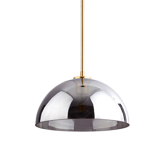 Minimalist Gold Pendant Light Kit | Single-Bulb Tan/Smoke Gray Mirror Glass Hanging Ceiling Lamp