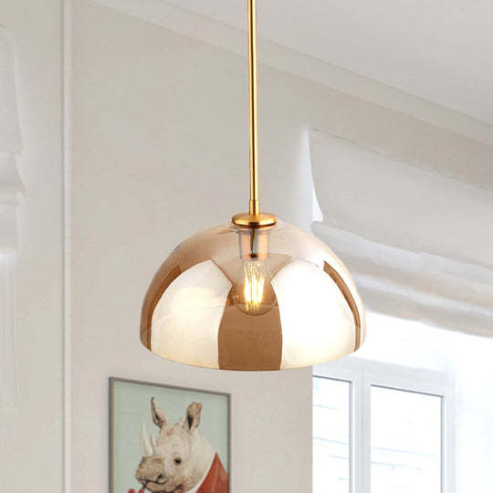 Minimalist Gold Pendant Light Kit | Single-Bulb Tan/Smoke Gray Mirror Glass Hanging Ceiling Lamp Tan