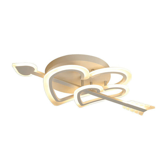 Nordic White Heart & Arrow Led Flush Mount For Bedroom Lighting / 12.5 Warm