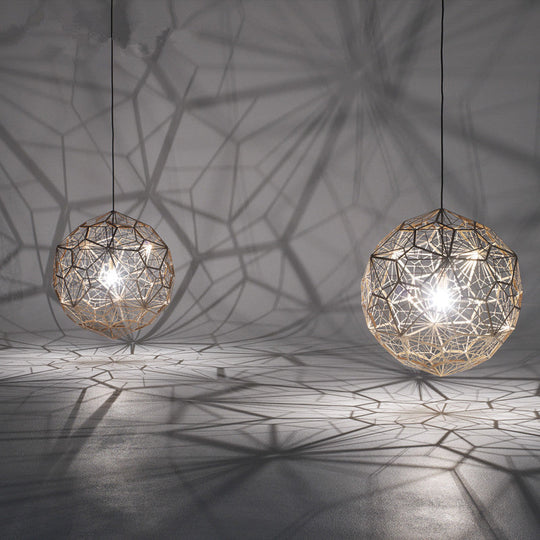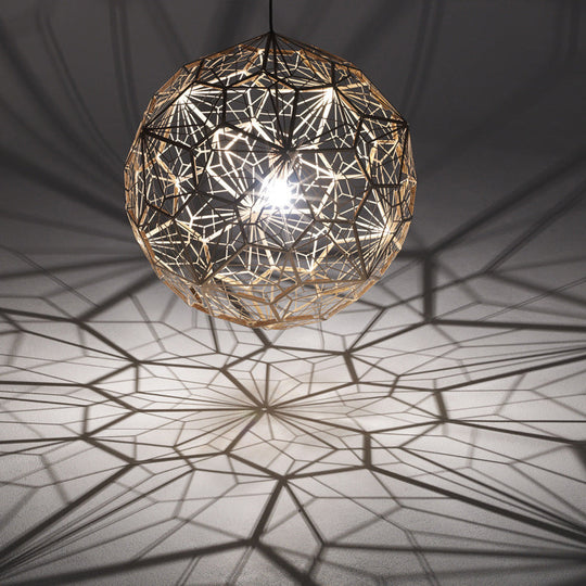 Modern Stainless Steel Rose Gold/Chrome Pendant Lighting: Stylish Hollowed Wire Sphere Design Gold