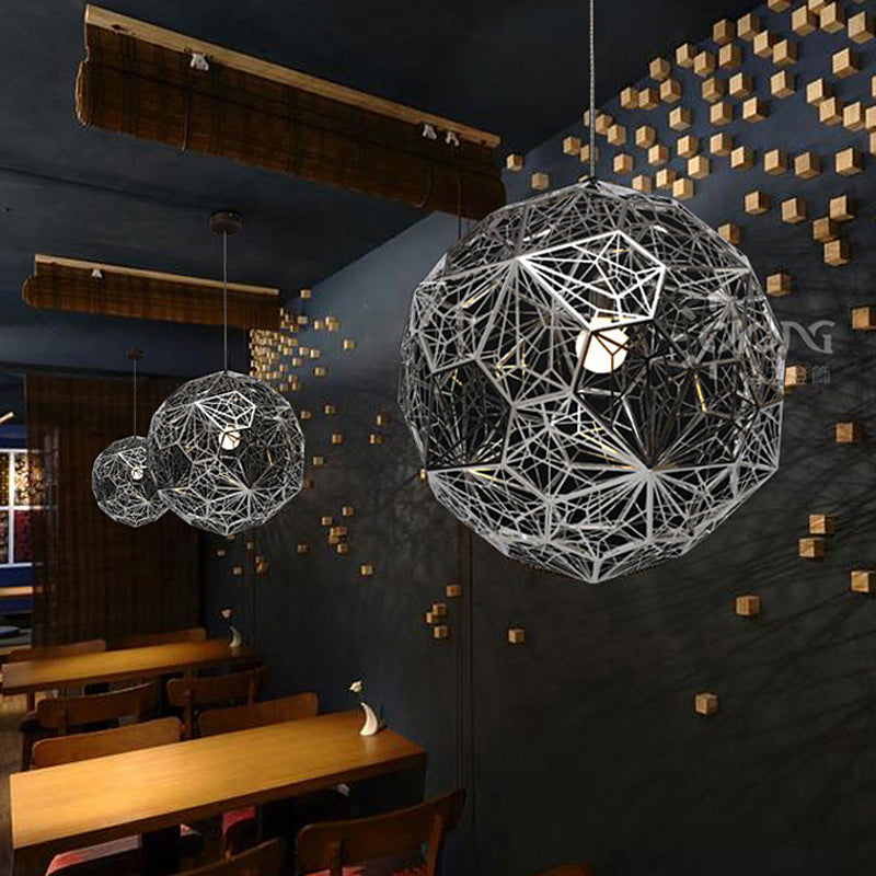 Modern Stainless Steel Rose Gold/Chrome Pendant Lighting: Stylish Hollowed Wire Sphere Design Chrome