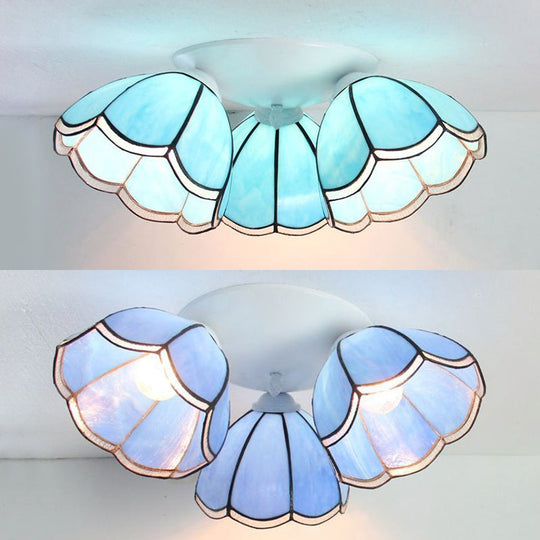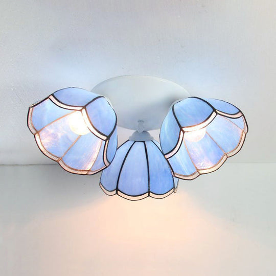 Vintage Stained Glass Ceiling Light Fixture - 3-Light Industrial Domed Design In Blue Tones Indoor