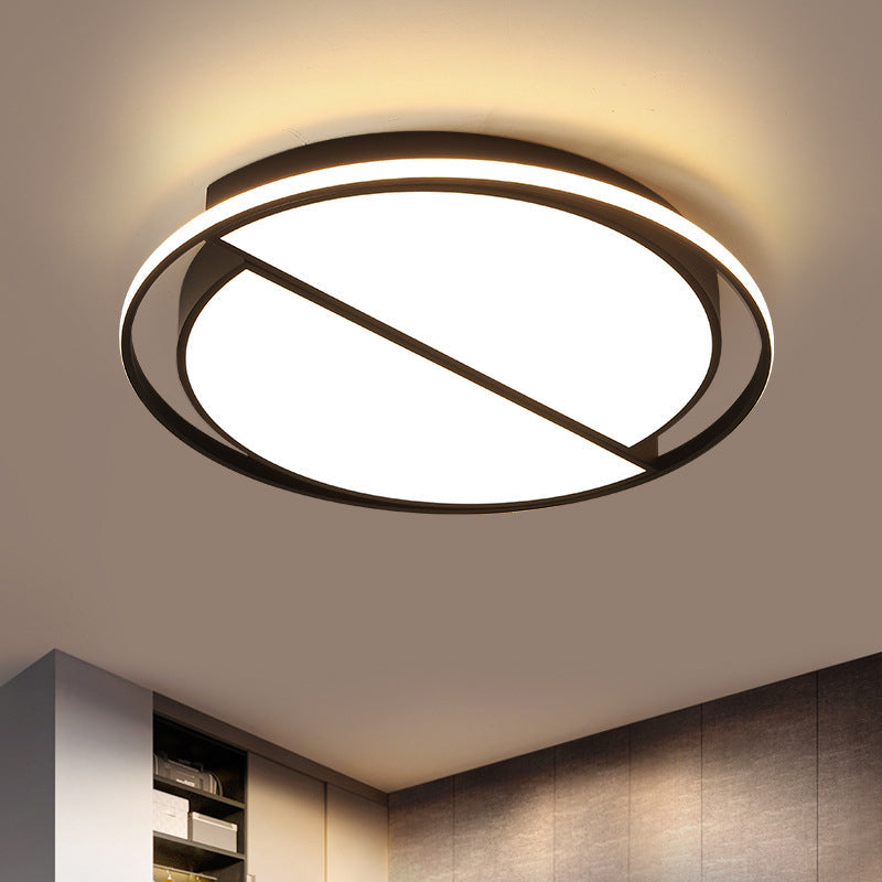 This product is a black, modern flush light for bedrooms with an acrylic shade in the shape of a semicircle, loving heart, or star. The light is LED and the bulb is included. The light is warm or white. The voltage is 110V-120V or 220V-240V.