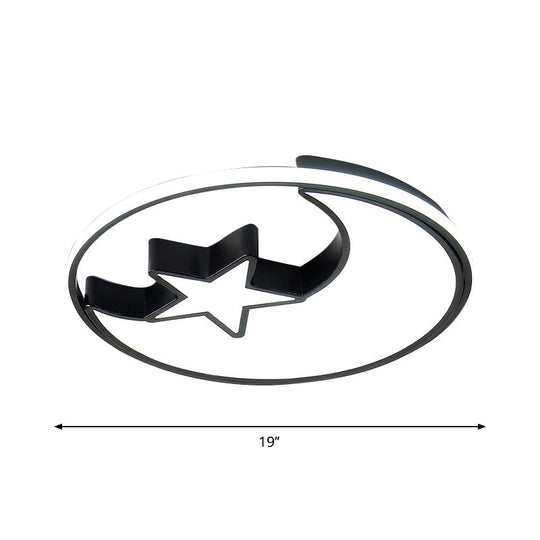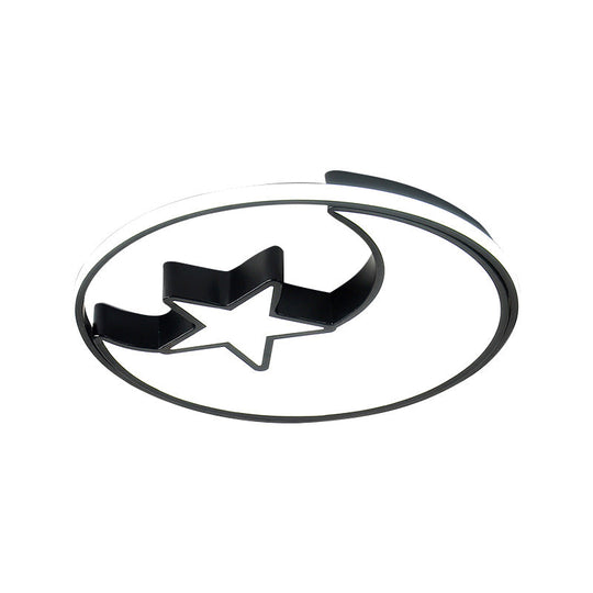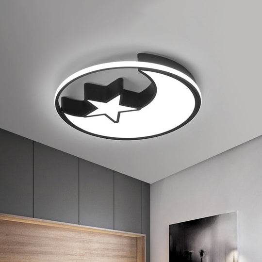 Modern Black Flush Mount LED Bedroom Ceiling Light with Acrylic Shade - Semicircle/Loving Heart/Star Design, Warm/White Light