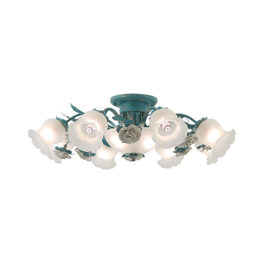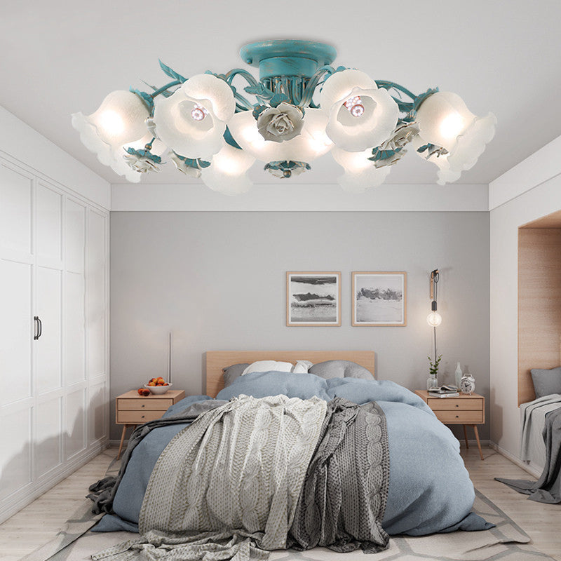 Korean Garden Flower Ceiling Light For Bedroom With Frost Glass Semi-Flush Mount 11 / Blue