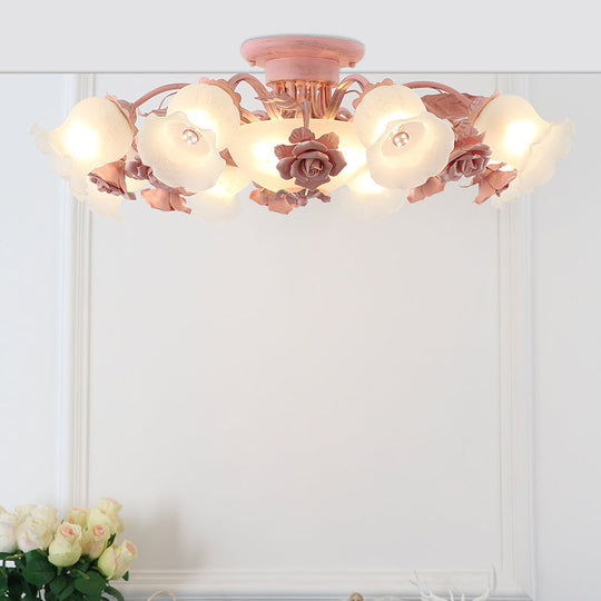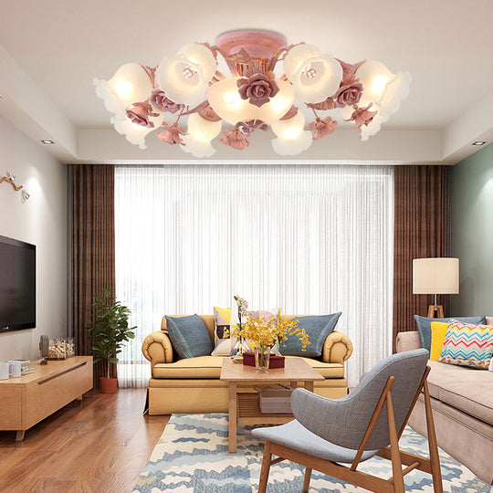 Korean Garden Flower Ceiling Light For Bedroom With Frost Glass Semi-Flush Mount 11 / Pink