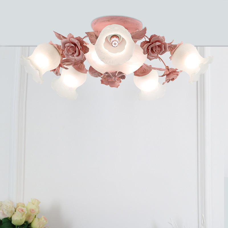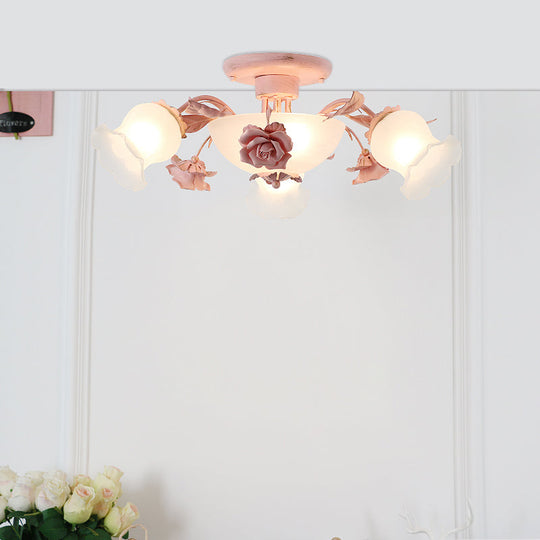 Korean Garden Flower Ceiling Light For Bedroom With Frost Glass Semi-Flush Mount 5 / Pink