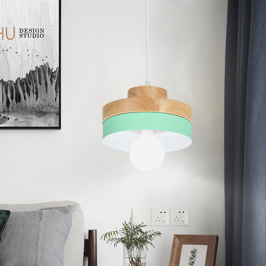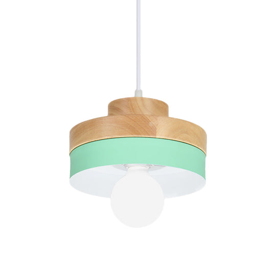 Modern Macaron Down Lighting Metal Ceiling Lamp with Colorful Wood Accents - 1-Light for Living Room