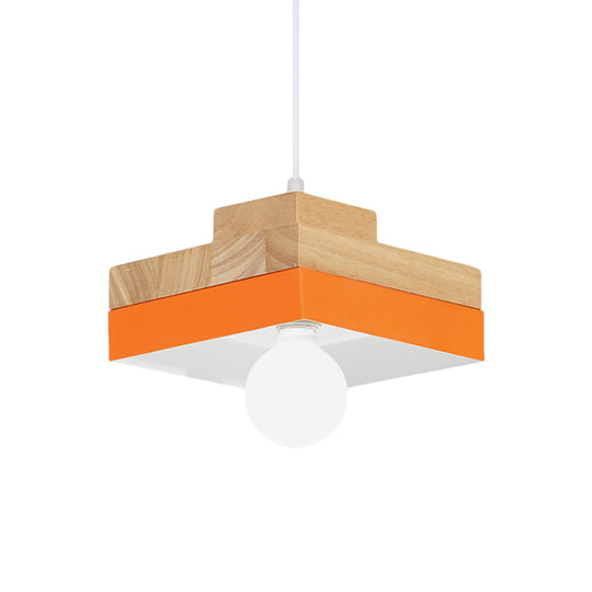 Colorful Macaron Circle/Square Down Lighting Metal Ceiling Lamp With Wood Accent - 1-Light For