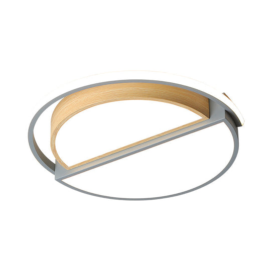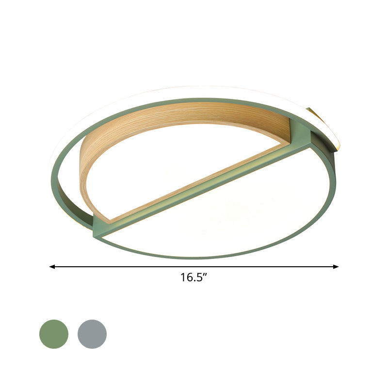 Modern Macaron Iron Ceiling Fixture 16.5"/20.5" Wide LED Flush Mount Lighting in Green/Grey-Wood with Warm/White Light