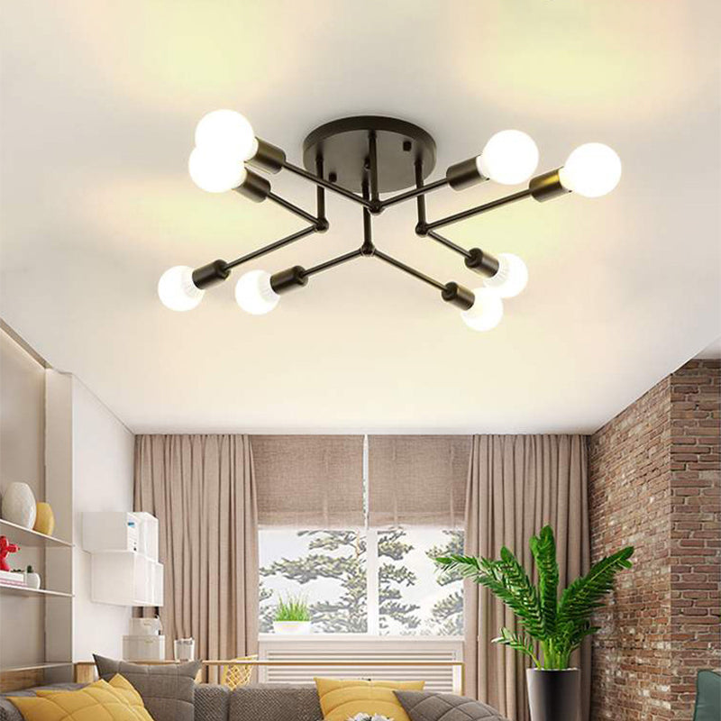 Contemporary Metal Branching Chandelier Stylish Semi Flush Ceiling Light For Living Room 8 / Black