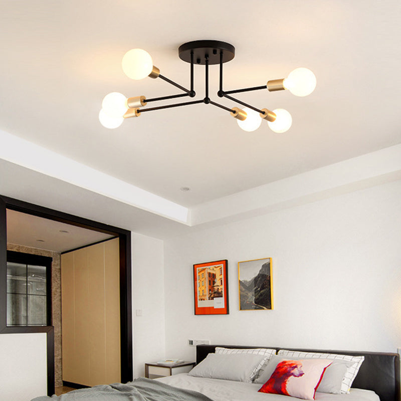Contemporary Metal Branching Chandelier Stylish Semi Flush Ceiling Light For Living Room 6 / Black