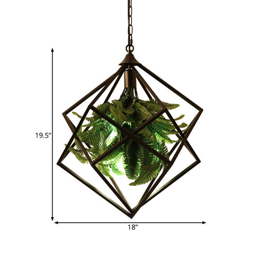 Geometric Metal Hanging Ceiling Light Retro 1 Bulb Led Black Suspension Lamp With Plant 18/21.5 Wide