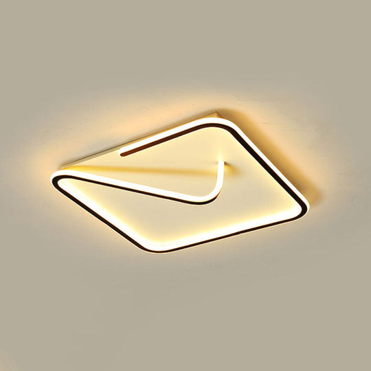 Modern Metal Geometric Line Flush Mount LED Lighting for Living Room - Black and White Color Scheme