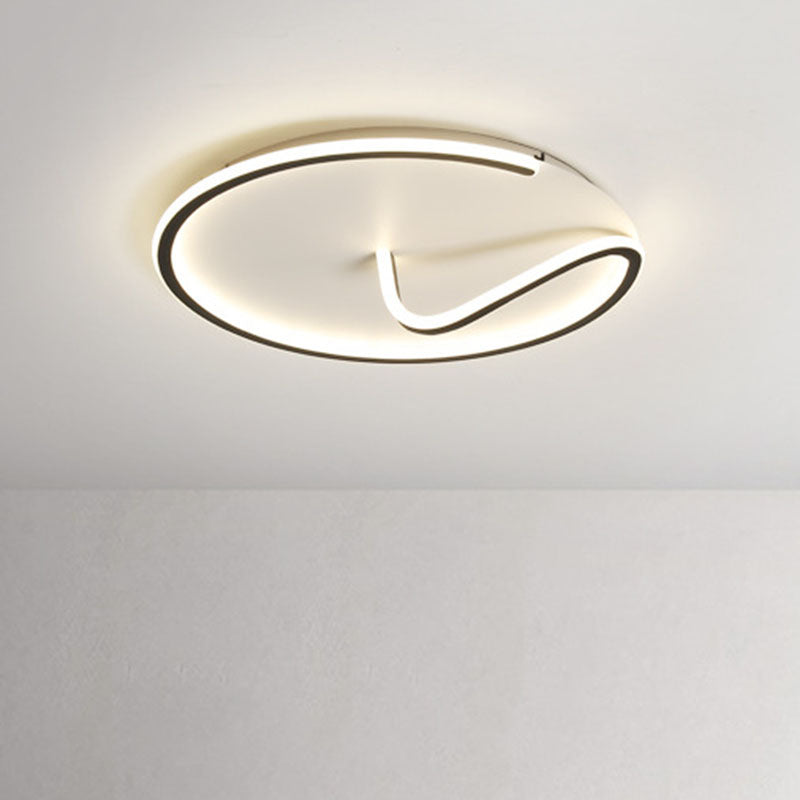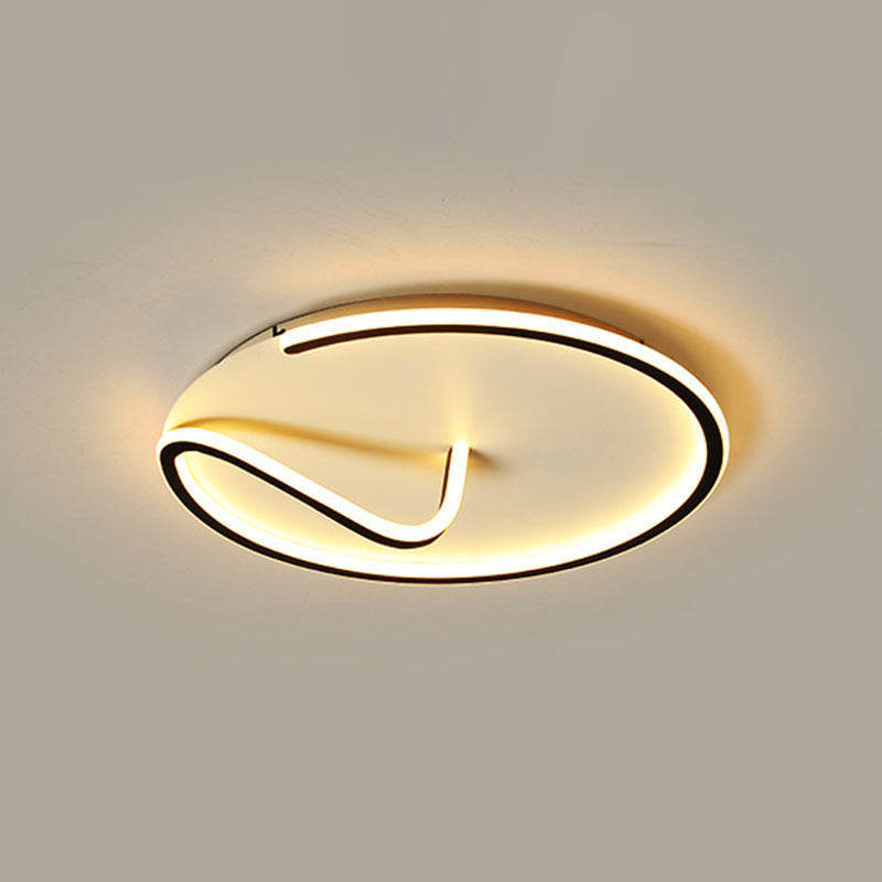Modern Metal Geometric Line Flush Mount Led Lighting For Living Room - Black And White Color Scheme