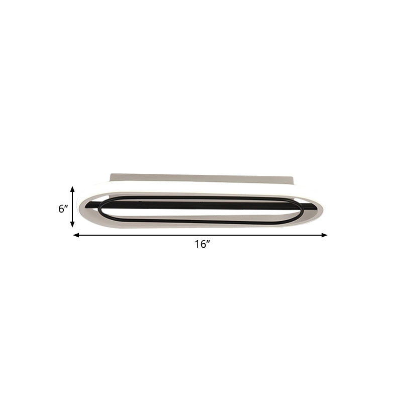 Modern Metal Oval Ceiling Lamp in Black and White/Gold with LED Flush Mount, Warm/White Light - 16"/23.5" Dia