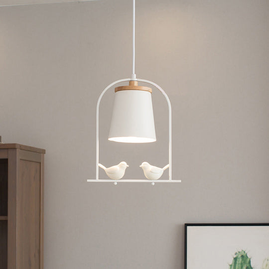 Modern Style Mini Pendant Light with Adjustable Ceiling Fixture and Bird Decoration - White