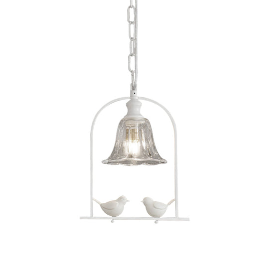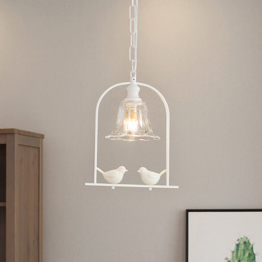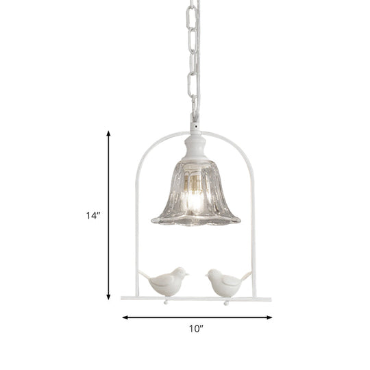 Modern Style Mini Pendant Light With Adjustable Ceiling Fixture And Bird Decoration - White / Glass