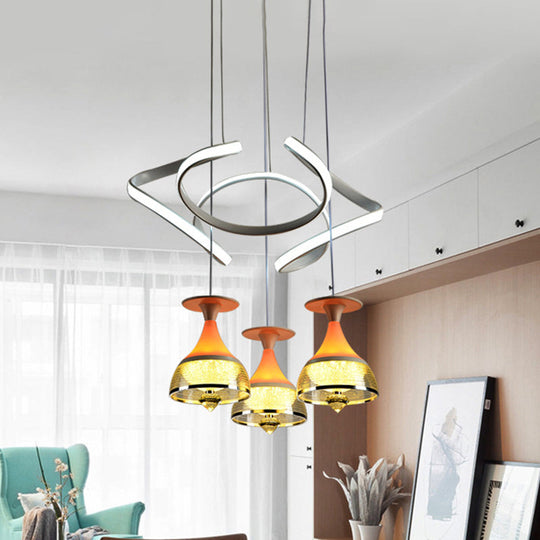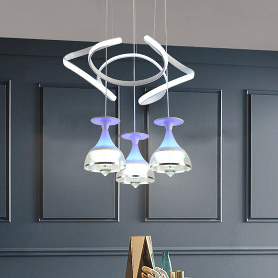 Contemporary 3-Light Wine Cup Pendant Cluster with White Waving Design - Acrylic Shade Included
