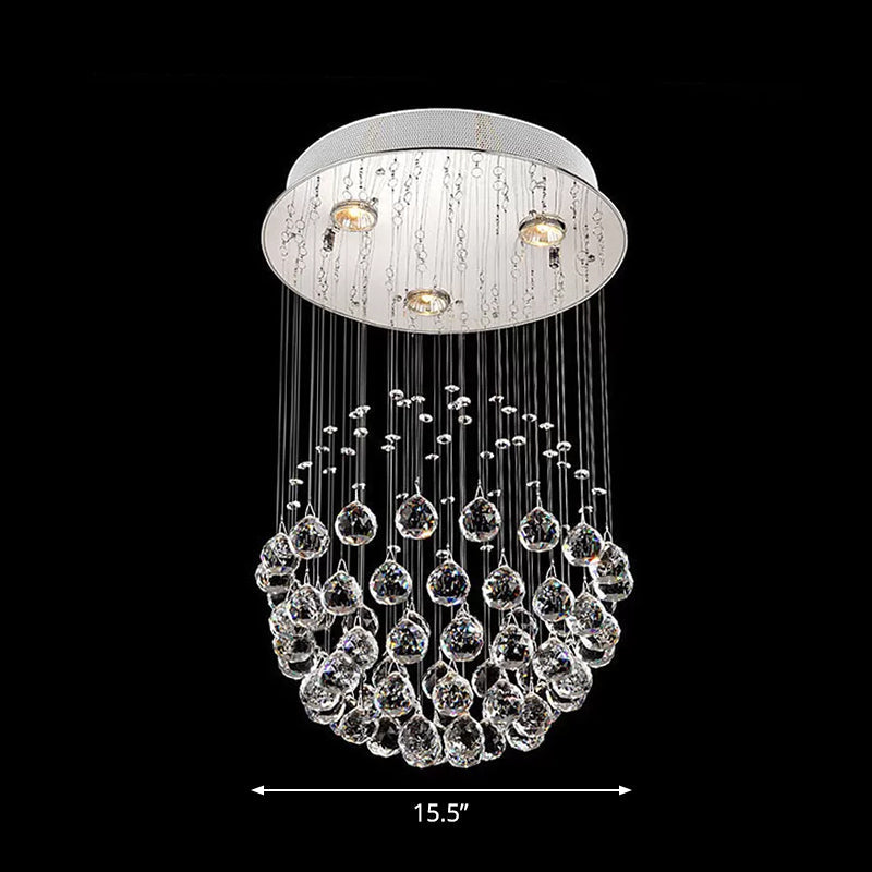 Contemporary Crystal Flushmount Light Fixture - Ideal for Restaurants - Stainless Steel Finish - 3/5/14 Bulbs